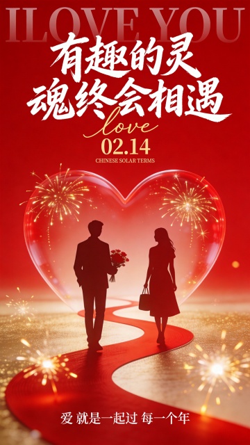国潮风融合拼贴设计,大字风标题传递喜庆与浪漫,浮雕质感文字搭配烟花、灯笼元素,营造温馨甜蜜的新年氛围,传递春节脱单主题。