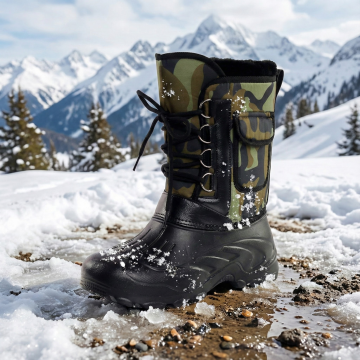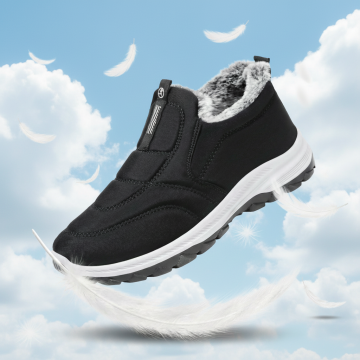 复古风灰色绒面皮鞋,置于毛绒地毯与圣诞装饰中,暖炉映衬,轻拟物设计融合面料质感,营造冬日温馨舒适氛围。