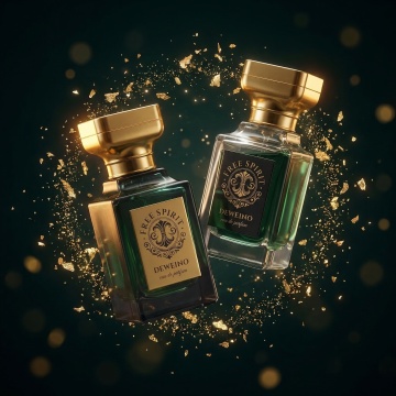 鎏金与金属质感交织,3D重拟物风格呈现奢华香水瓶,梦幻光影中金箔飞舞,营造极致梦幻氛围,节日礼赠之选。