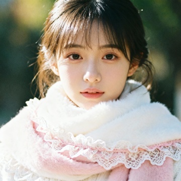写实风格人像摄影,亚洲美女,长卷发,明亮有神的眼睛,自然微笑,白皙肌肤,穿着复古格纹背带裙搭配白色泡泡袖衬衫,站在秋日落叶纷飞的公园湖边,阳光透过树叶洒下斑驳光影,湖水呈现温暖的琥珀色调,整体氛围清新治愈,高清细腻质感,柔和自然光线,浅景深,突出主体人物。