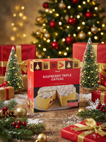 3D重拟物风圣诞树蛋糕,草莓与抹茶层层堆叠,金色星顶闪耀,粒子雪花飘落,营造甜蜜喜庆梦幻氛围。
