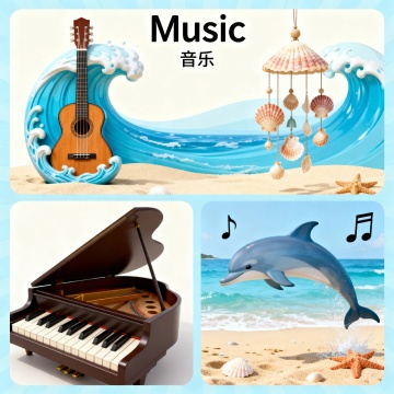 重新生成 40张英语单词学习教育主题的图片,主题为海,不限风格,上面必须有对应的英文词语和中文翻译。比例1:1