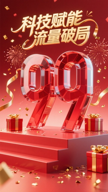 3D重拟物风格红 envelope,塑料质感搭配霓虹光带,喜庆氛围中飘洒优惠券,营造节日促销狂欢感。