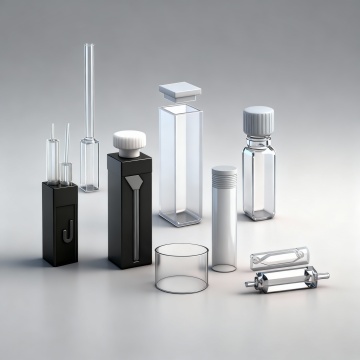四个不同样式的透明玻璃滴管瓶,分别为棕色、蓝色、绿色和透明色,每个瓶子搭配不同颜色的液体和黑色滴头,瓶身光滑有光泽,在白色纯色背景上呈一字型整齐排列,光线从左上方照射形成柔和阴影,整体呈现简洁干净的产品展示风格,无任何文字和装饰元素。