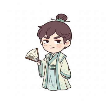 古典中式插画风,水墨山水背景,人物手持折扇,尽显雅致韵味。