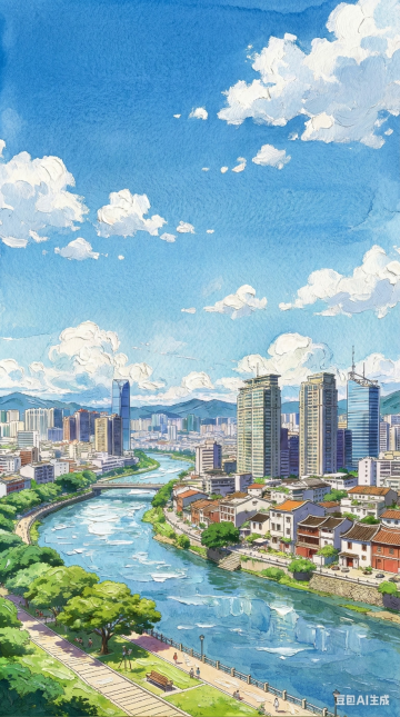 一幅充满梦幻色彩的海边插画,画面中有清澈碧蓝的海水,海浪轻轻拍打着金黄色的沙滩,远处是连绵起伏的青山,天空中飘着洁白的云朵,点缀着几只飞翔的海鸥和五彩斑斓的贝壳,整体风格偏向唯美浪漫,色彩鲜艳明快,营造出一种宁静而美好的氛围。