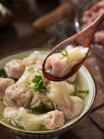 我想要一张手绘风格的鱼丸在碗里的图片,画面要简洁