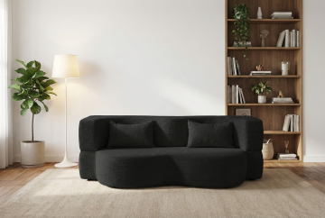明亮柔和的自然光洒满整个空间,采用极简北欧风格设计,以米白色、浅木色和原木色为主色调,温暖而治愈的氛围。画面中展示的是一个变换了不同家具环境的客厅,整体构图保持对称美学与开放式布局,光线从左侧窗户斜射进来,在浅色木地板和条纹地毯上形成清晰的光影层次。墙上挂着两幅简约线条的植物装饰画,搭配原木边框。左侧有一盏弧形黄铜落地灯,灯光柔和,旁边摆放着一盆绿植。中央是一张浅灰色布艺沙发,搭配几个不同纹理的浅色系靠垫,沙发前是一张原木色茶几,上面整齐摆放着几本书籍和一个小巧的陶瓷花瓶。整体画面质感细腻,线条简洁流畅,空间通透,营造出舒适、宁静且温馨的居家氛围。