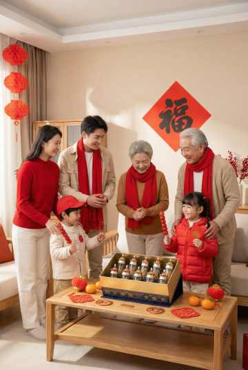 国潮风刺绣服饰,母女共书祈福,红灯笼映衬温馨实景,喜庆中式年味浓。