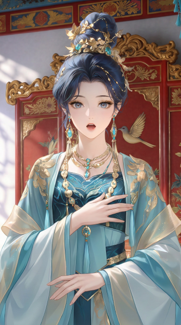 中国风二次元动漫风格,一位身着红色与金色渐变飘逸古风长裙的少女,长发如墨色瀑布般垂落,发间点缀着金色凤凰发饰,右手掌心托着一朵燃烧的金色莲花,莲花周围环绕着红色火焰光晕,左手自然舒展,裙摆与长发随风飘动,姿态轻盈灵动,面部表情温柔恬静,眼神清澈,整体线条流畅细腻,色彩鲜明且具有层次感,光影柔和,背景为纯白色,无其他元素干扰。