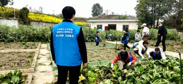 在空地上放置各种种子包装袋,再放一些带黑色育苗盘的菜苗