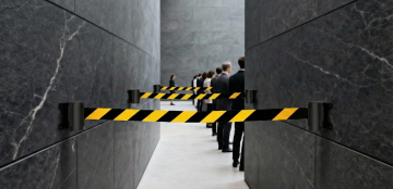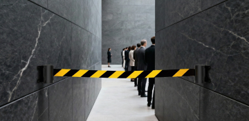 一个黄色的三角形警告标志,内部有一个黑色的感叹号,标志外框为黑色,黄色三角形内部边缘有一圈白色线条,整体设计简洁明了,具有强烈的视觉警示效果,风格为扁平化设计,色彩对比鲜明,突出警告主题。