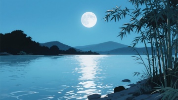 二次元古风,竹子江边,浅蓝色为主,细节丰富,生成2张,不要人,4k,16:9