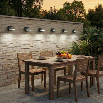 光影交织的花园夜景,现代金属射灯点亮粉红三角梅,自然光效与轻拟物风融合,营造清新温馨的浪漫氛围。