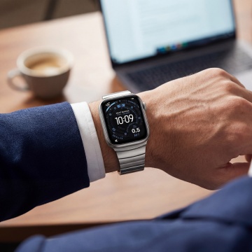 金属质感腕表融合极繁主义设计,科技感界面与商务正装呼应,现代简约风格彰显高端品味。