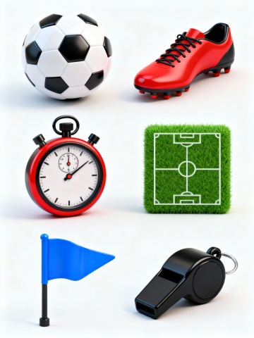 1. 特写镜头,未来科技感3D渲染足球,经典黑白六边形拼接图案,表面呈现炽热的岩浆红渐变光泽,带有金属质感高光反射,足球正高速运动,拖曳出流畅的红色光尾轨迹,光尾由深红向橙红渐变并带有轻微的虚化模糊效果,整体悬浮在纯白色背景上,光线从斜前方照射,形成明显的明暗对比和立体光影层次。