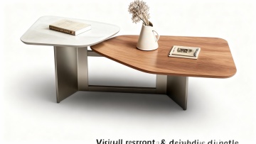 一张极简风格的产品展示图,主体为一件造型简约优雅的圆形台面家具(或类似产品),台面材质改为光滑细腻的哑光白色陶瓷,边缘呈现柔和的弧形过渡,底部搭配纤细的黄铜金属支架,支架设计为交叉几何造型,整体线条流畅现代。背景替换为纯净的浅米色,光线从左上方45度角柔和照射,在产品表面形成自然的高光和细腻的阴影,台面中央有轻微的反光效果,凸显材质的温润质感与高级感,整个画面构图采用经典的三分法,产品位于画面中央偏下位置,底部接触深色沉稳的地面,营造出宁静、精致且具有现代设计感的氛围。