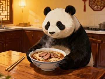 软3D风格的熊猫,毛发生长细腻逼真,萌态十足,营造温馨可爱氛围,适合节日治愈系主题。