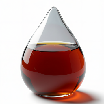 3D玻璃质感水滴造型,重拟物设计展现清透与体积感,科技感十足的琥珀色液体,光影细腻,现代简约风格。
