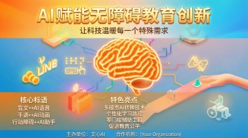 科技感十足的3D重拟物风设计,融合霓虹灯与金属质感,展现未来AI教育场景,虚拟现实元素点缀,突出商务与创新氛围。