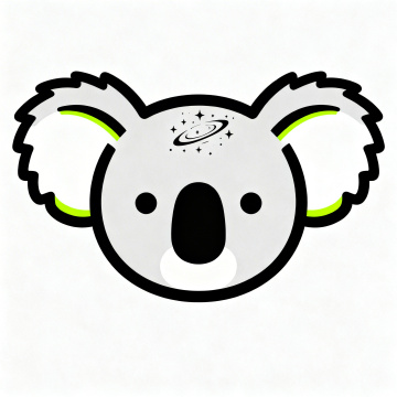 可爱卡通考拉头像,拟人化设计,插画风搭配描边线条,额头点缀星系图案,梦幻感十足,简约主义与emoji风格融合,充满童趣与想象力。