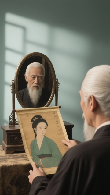 古典中式工笔风,水墨山水背景,超现实主义手法展现师徒对话,意境深远。