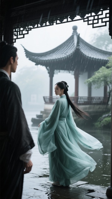 請仔細分析以下的歌詞,包含意境,意義,氛圍...等,不要遺漏任何細節,分析後,請生成切合這首歌詞意境與風格的20張分鏡圖,圖片風景美麗,山水壯麗,色彩艷麗,女的美麗可愛,男的帥氣英挺,圖片與圖片之間要求要有強烈的相關聯,且人物,環境,文化背景,風格,腳色等都要一致性,要求所有的圖片尺寸為"9:16", 電影唯美真人寫真風格,32K超高畫質,確保圖片裡不要有任何文字,也不要有血腥,戰爭,流血的任何畫面,畫面要求有張力,能觸動人心,引發共鳴,大師史詩級作品 : " [Verse] 水墨丹青勾勒你的眉眼 青衣長衫掩不住你風華 執筆為你寫下千言萬語 落款處是我深情的名字啊 你轉身的瞬間衣袂飄飄 像畫中仙子下凡塵世 我願做那支畫筆 將你永遠留在畫卷裡 [Pre-Chorus] 一筆一畫都是思念 墨色深淺訴衷腸 [Chorus] 墨染青衣畫中人 這相思入骨三分 就算時光匆匆流逝去 就算容顏會老去 這幅畫裡你永遠年輕 是我心中最美風景 "