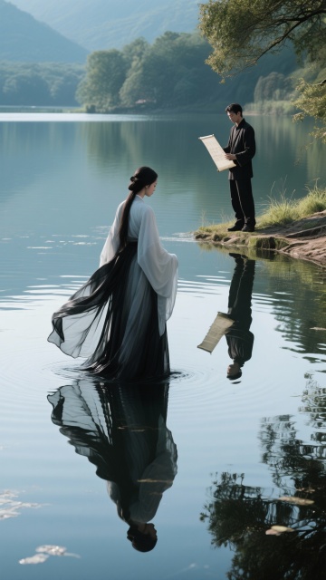 請仔細分析以下的歌詞,包含意境,意義,氛圍...等,不要遺漏任何細節,分析後,請生成切合這首歌詞意境與風格的20張分鏡圖,圖片風景美麗,山水壯麗,色彩艷麗,女的美麗可愛,男的帥氣英挺,圖片與圖片之間要求要有強烈的相關聯,且人物,環境,文化背景,風格,腳色等都要一致性,要求所有的圖片尺寸為"9:16", 電影唯美真人寫真風格,32K超高畫質,確保圖片裡不要有任何文字,也不要有血腥,戰爭,流血的任何畫面,畫面要求有張力,能觸動人心,引發共鳴,大師史詩級作品 : " [Verse] 水墨丹青勾勒你的眉眼 青衣長衫掩不住你風華 執筆為你寫下千言萬語 落款處是我深情的名字啊 你轉身的瞬間衣袂飄飄 像畫中仙子下凡塵世 我願做那支畫筆 將你永遠留在畫卷裡 [Pre-Chorus] 一筆一畫都是思念 墨色深淺訴衷腸 [Chorus] 墨染青衣畫中人 這相思入骨三分 就算時光匆匆流逝去 就算容顏會老去 這幅畫裡你永遠年輕 是我心中最美風景 "