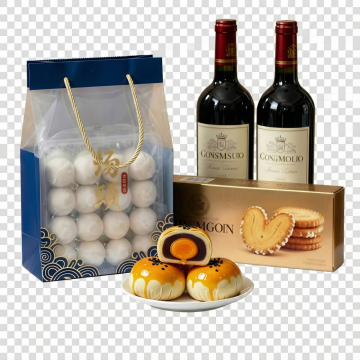 竖版构图,中秋高端礼盒主视觉海报,整体采用霁蓝与鎏金渐变色调,背景为流动的祥云托举着一轮满月的工笔意境,月光如水银倾泻而下。画面中央是双层六角形提篮礼盒,上层以螺钿工艺镶嵌玉兔捣药图案,下层浮雕缠枝莲纹,礼盒正面悬挂着写有"中秋雅韵"的洒金红绸吊牌,礼盒置于雕花紫檀木座上,木座旁散落着几颗晶莹的露珠。前景为青瓷碟中摆放的广式莲蓉月饼、苏式鲜肉月饼和一盏燃着檀香的三足铜炉,月饼酥皮层次分明,铜炉青烟袅袅上升与背景云气融为一体。海报上方主标题"月满人间·礼传心意"采用瘦金体书写,副标题"经典双黄莲蓉 × 黑松露流心奶黄"以烫金小楷呈现,整体通过冷金色勾勒轮廓,在深邃的霁蓝背景中形成尊贵典雅的视觉焦点,传递出匠心手作、礼赠臻品的中秋文化底蕴。