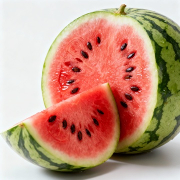 水彩风格插画,六个不同样式的西瓜,浅色背景,上下两行对齐排列。每个西瓜都有独特的造型和细节,包括完整的圆形西瓜、切开的半月形西瓜露出红色果肉和黑色种子、带有绿色藤蔓的西瓜、表面有不同条纹图案的西瓜、带有水滴效果的西瓜以及切片堆叠的西瓜。色彩清新明快,以绿色瓜皮和粉红色瓜瓤为主色调,搭配深绿色的西瓜纹路和黑色种子作为点缀。每个西瓜都配有几片绿色的西瓜叶,叶子边缘有自然的水彩晕染效果。整体构图采用上下两行三列的对齐排列方式,西瓜之间保持均匀的间距,背景为纯净的浅色,突出西瓜的主体地位。水彩笔触自然流畅,色彩过渡柔和,带有轻微的水痕和透明感,呈现出清新、自然、手绘的艺术效果。