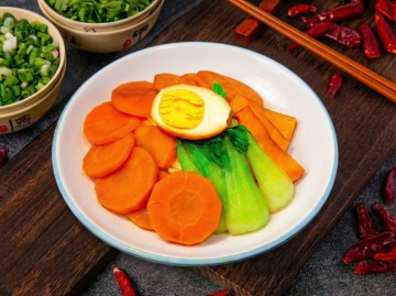 清新中式实景,豆腐配肉香,绿叶点缀,自然光下尽显家常美味。