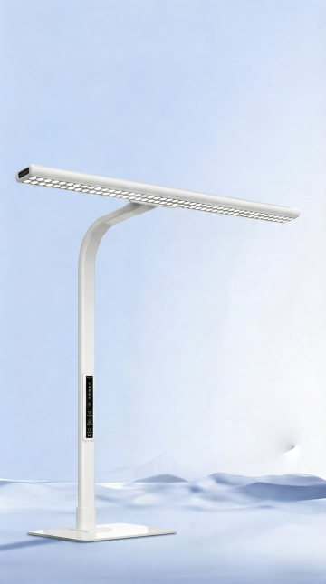 简约现代的书桌设计,温馨灯光营造舒适感,手账与书籍点缀文艺风,体现印刷风的精致细节。