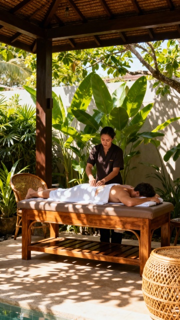 轻拟物风融合油画质感,柔和光影勾勒温馨按摩场景,实景感十足,传递舒适疗愈氛围。