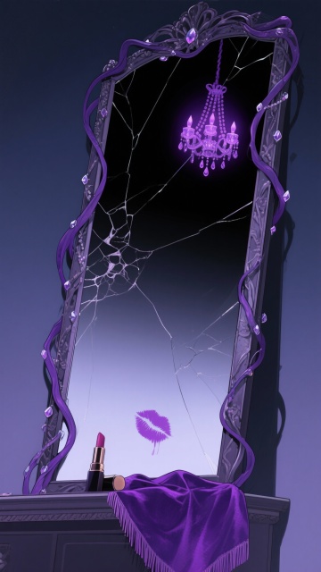 二次元,黑夜、月亮、玫瑰镜子,深红色,氛围压抑、孤独,细节丰富,构体丰富,夸张构图,不要人物,超高清,生成2张