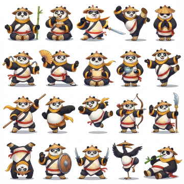 根据图中的形象生成不同动作的新形象出来,每个形象一张,共生成10张