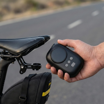 清新自然的山野实景中,现代感十足的蓝绿色自行车静立草甸,金属质感与光影交错,轻拟物设计融合浮雕细节,展现科技与舒适并存的骑行美学。
