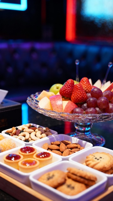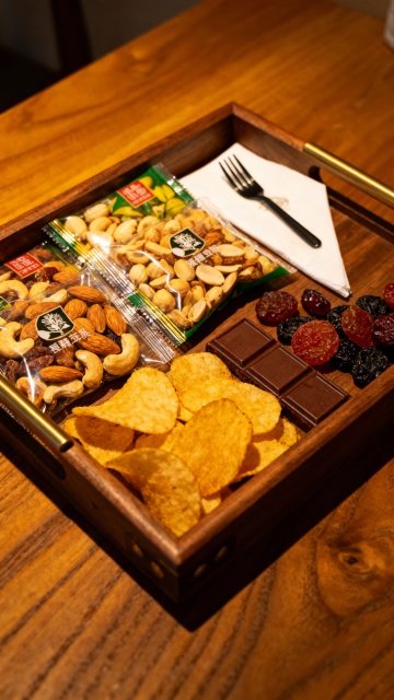 盖子通透干净,突出食物的精致感。旁边还有一个空的产品盒,以及一个小巧的浅色木质方托盘。