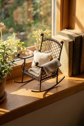 自然光摄影风格,柔和明亮的光线从侧上方洒入,在浅米色墙壁上形成清晰的光影条纹,温暖的木质桌面占据画面下方三分之一,桌面上摆放着不同的家居摆设,如插有干花的陶瓷花瓶、叠放的布艺靠垫和一本翻开的装饰画册,背景中是重新布置的白色开放式置物架,架上陈列着造型简约的玻璃罐、藤编收纳篮和绿植盆栽,整体色调采用原木色、浅灰色与淡蓝色的和谐搭配,营造出清新自然、整洁有序的现代简约家居氛围,焦点清晰,背景适当虚化,画面质感细腻,具有良好的空间层次感和舒适的居家温馨感。