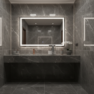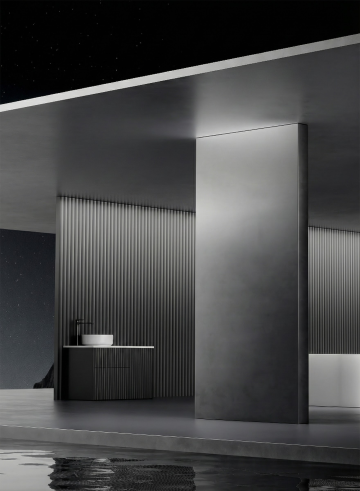 极简主义风格的卫生间室内设计,整体采用米白色与浅木色的柔和配色方案,温暖的嵌入式灯带与顶部筒灯提供均匀柔和的照明,营造明亮通透的氛围。墙面和地面铺设大块浅色哑光瓷砖,线条简洁流畅。不同场景下的卫生间摆设:有的配备悬挂式白色洗手台,台面整洁,搭配简约白色水龙头,上方是带储物功能的镜柜,旁边装有黑色金属毛巾架;有的设置独立玻璃淋浴房,内部有壁龛收纳洗浴用品,黑色淋浴喷头与五金件形成精致对比;有的墙面悬挂线条简约的黑白花卉装饰画,下方嵌入木质灯带壁龛,摆放香薰和装饰摆件;有的空间内放置智能马桶,旁边设有带木质搁板的收纳区。整体设计注重功能性与美学的平衡,空间布局合理,细节处理精致,呈现出现代、干净、舒适的卫生间环境。