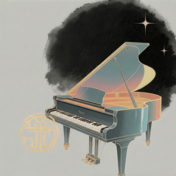 浅蓝色背景上,由白色发光的五线谱曲线和多种音乐符号(高音谱号、八分音符、四分音符、升号)组成的优雅音乐元素图案,符号呈现柔和的半透明发光效果,曲线流畅自然地在画面中形成环绕式布局,整体保持简约现代的设计风格,营造出宁静而富有韵律感的氛围。