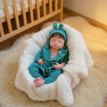 微型仿真娃娃躺在草堆上,在大自然中