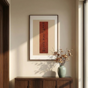 将这两张图片里面的挂画一起挂在一个现代中式复古客厅墙上,画质清晰,光影效果