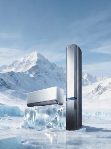 科技感十足的3D风虚拟现实设计,展现未来空调在冰雪世界的清凉体验。