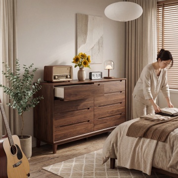 现代简约风边柜,融合性冷淡与轻拟物设计,弧形玻璃门与柔和配色营造温馨舒适感,搭配抽象画作与自然元素,展现文艺氛围。