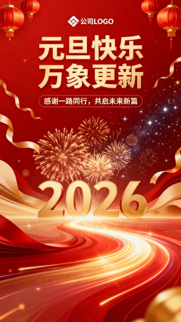 主体:图示人物站在人群中,穿着驼色大衣,带红围巾,手拿着点燃的礼花,礼花喷出的烟花自下而上升起放射状的2026、新年快乐、万事顺遂密集小字重复出现,成烟花状,几乎铺满整个画面。