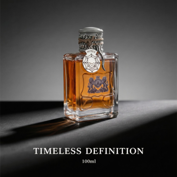 优雅奢华的香水瓶置于木雕风底座,搭配柔和插画风花卉,简约主义设计,尽显高贵。