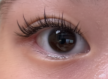超写实人像摄影,特写镜头,聚焦于一只人类眼睛,极致清晰的细节,柔和均匀的自然光,高清晰度,浅米色细腻皮肤质感,深棕色自然眉毛,眉形精致边缘柔和,睫毛纤长浓密根根分明,眼尾微微上扬,眼白纯净通透,虹膜呈深棕色并带有细微的金色纹理,瞳孔中央有明亮的圆形高光,眼周肌肤光滑细腻,眼睑处有淡淡的珠光米色眼影,内眼角自然红润,改变眼睛造型为更圆润的杏眼,神态呈现温柔无辜的注视感,眼周纹理增加细腻的毛细血管和淡淡的卧蚕阴影,整体保持真实自然的人像风格,色彩柔和温暖,光影过渡自然,无logo和文字。