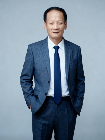 保留人物脸型、发型、年龄特征生成标准职场形象照,50MM焦段,F/4光圈(F/2.8-F/4区间),相机与人物距离3米,横向16:9比例(左右预留环境空间),人物占画面60%,入镜头部至膝盖上方5CM,平视视角,人物居中构图,头肩比例协调,身穿深墨蓝色西装,内搭白色衬衫,精致且高级的深蓝色斜向微微渐隐光泽感极细条纹商务感领带,下装黑色西裤搭配黑色皮带;正面抱胸姿态,肢体舒展的站立姿态,自信从容;主