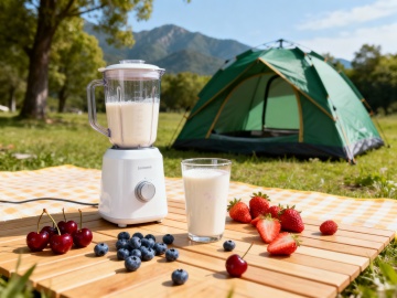 现代感与科技感交融的榨汁机设计,金属风与玻璃风结合,光影交错中展现清新清爽的视觉体验,重拟物风格强化质感,实景感十足。