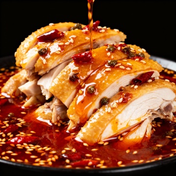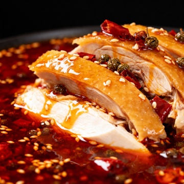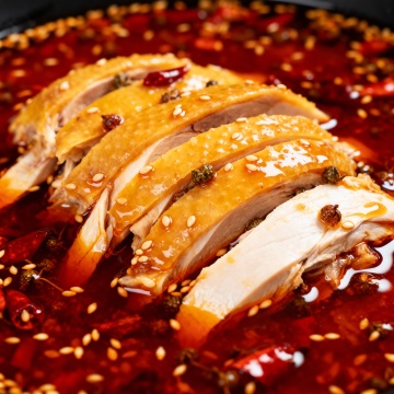 国潮风融合鎏金金属质感,重拟物手法呈现热辣鸭脖火锅,中式复古元素与喜庆红金配色交织,营造浓厚节日氛围。
